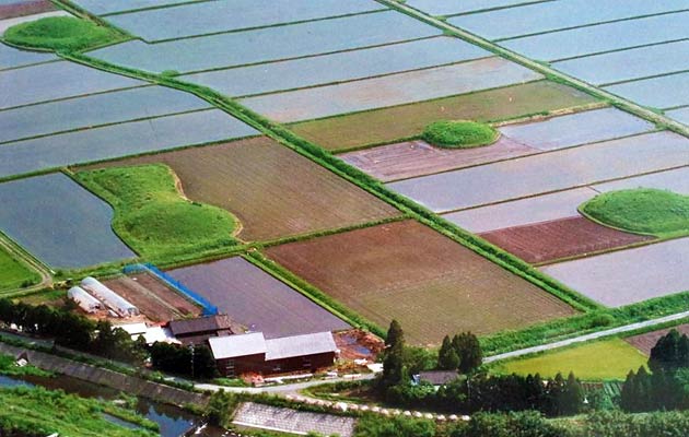 中通古墳群(阿蘇市)阿蘇の文化的景観は、世界最大級のカルデラにおいて、古来、自然と人々の共生により維持されてきた草原や長い年月をかけて農耕の生産性向上・拡大を進めた田畑などにより形成されています。
