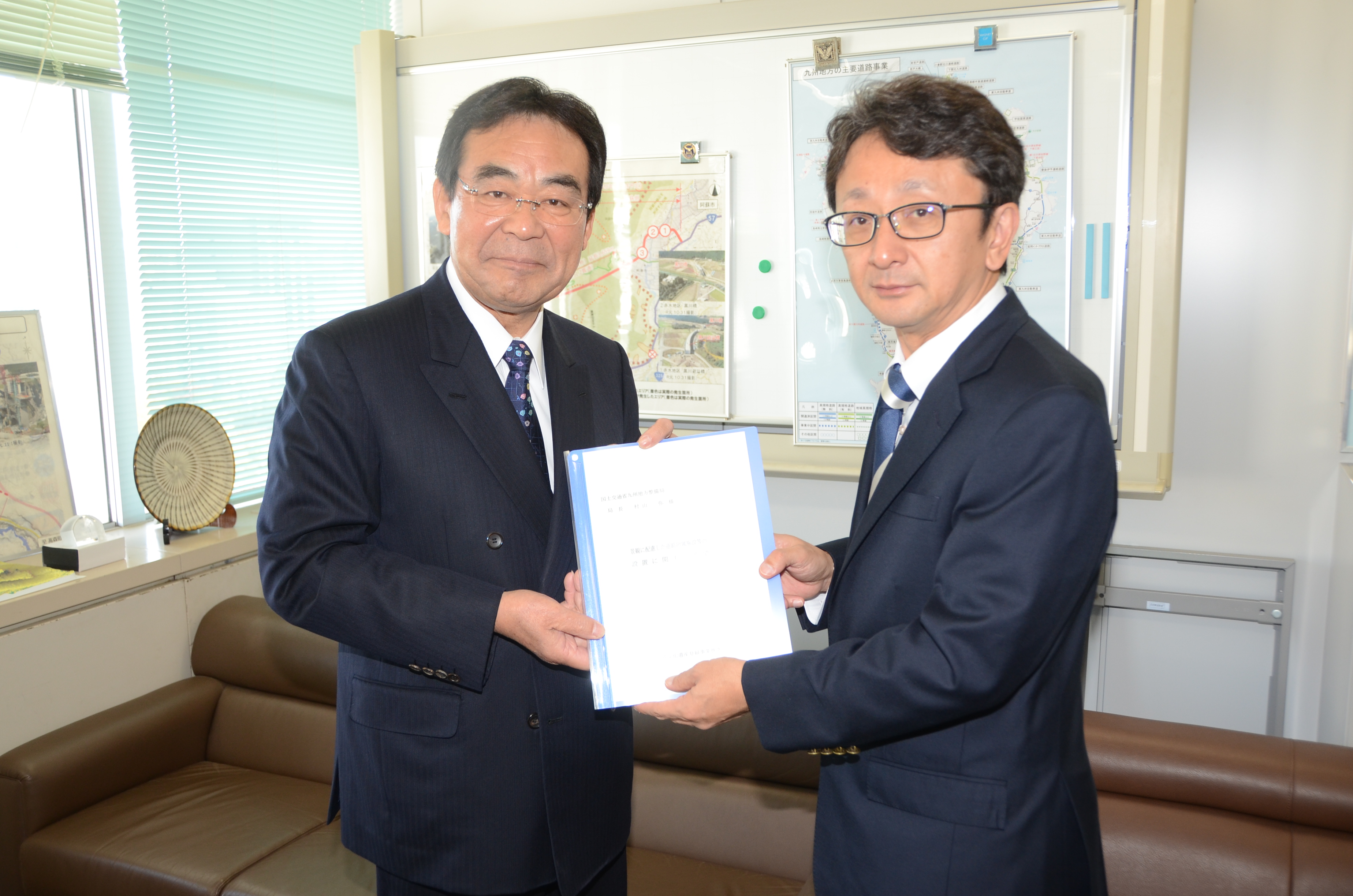 11月12日、阿蘇郡市世界文化遺産登録事業推進協議会(会長阿蘇市長佐藤義興)は、阿蘇地域で進められる災害復旧工事の景観配慮に関する要望書を、国土交通省九州地方整備局道路部長に手渡しました。